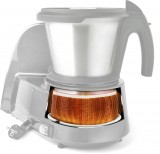 Термомиксер поставляется с 2-х литровой чашей из нержавеющей стали. Чаша имеет удобную ручку и резиновую крышку. Датчики безопасности машины отключают вращение ножей при открывании крышки. На внутреннюю сторону чаши нанесена мерная шкала.