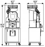 Профессиональная соковыжималка с автоматической системой дозирования сока и загрузочным бункером на 15 кг апельсинов. Скорость отжима 38 апельсинов в минуту. Кожура автоматически сбрасывается в большой пластиковый бак, расположенный внутри тумбы.